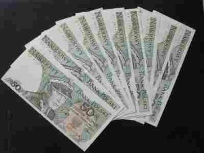 10 x 50 zł 1988 r serie na G... UNC