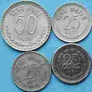 10 x Indie 50, 25, 10, 5, 1 paise od 1960