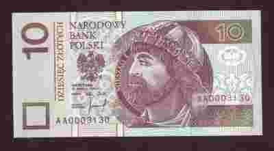 10 ZŁ 1994 SERIA AA00031XX UNC