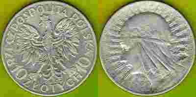10 zł Głowa Kobiety 1932 r. bz Ag