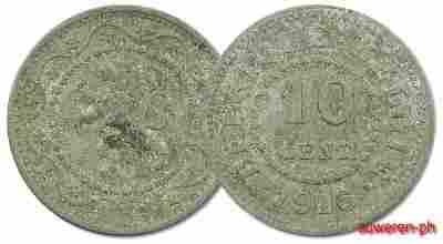 11.BELGIA, NIEM.OKUP., 10 CENTIMOW 1916