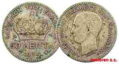 11.GRECJA, JERZY I, 50 LEPTA 1874 A