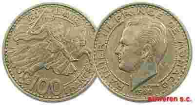 11.MONACO, RAINIER III, 100 FRANKOW 1950