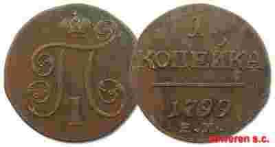 11.zz.ROSJA, PAWEŁ I, 1 KOPIEJKA 1799 EM