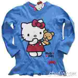 Nowa bluzka z długim rękawem, bluzeczka ma z przodu aplikacje "Hello Kitty" z pacynką misiem, wykonane technologi sitodruku przez co są bardzo trwałe, z dołu falbanka z kokardka, bardzo dobra gatunkowo bawełna, delikatny miękki materiał. Produkt oryginalny z metkami, na licencji, jakość pierwsza.