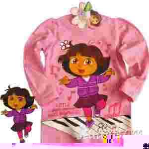 Nowa urocza bluzeczka z DORĄ ulubienicą dziewczynek z bajowego świata. Tunika z długim rękawem, bluzeczka w ślicznych dziewczęcych kolorkach, z przodu tańcząca na pianinie Dora , aplikacje wykonane technologi sitodruku. Produkt oryginalny z metkami na licencji. Jakość pierwsza.