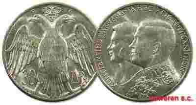 12.GRECJA, C.II, 30 DRACHM 1964 ŚLUB Z ANNĄ MARIĄ
