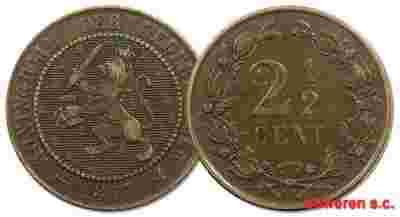 12.HOLANDIA, WILLEM III, 2 1/2 CENTA 1877