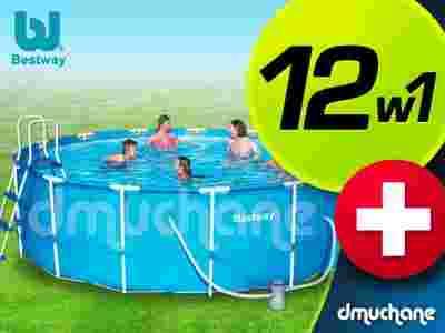 W komplecie z basenem znajduje się pompa filtrująca wraz z filtrem do stałego filtrowania wody. Mata zabezpieczy dno basenu przed przetarciami, a pokrywa zabezpieczy wodę przed zabrudzeniami. Dzięki dołączonej metalowej drabince korzystanie z basenu będzie łatwe i przyjemne! W utrzymaniu czystego basenu pomoże kompletny zestaw czyszczący, na który składa się skimer (powierzchniowy oczyszczacz wody, który zbiera z tafli duże zanieczyszczenia), aluminiowy kij, oraz dwie końcówki - siatka oraz odkurzacz (podłączany przez pompę filtrującą). Dołączone tabletki multifunkcyjne (chlor w tabletkach) rozprowadzisz za pomocą pływaka, który dodatkowo posiada wbudowany termometr! Tylko u nas gratis apteczka basenowa!