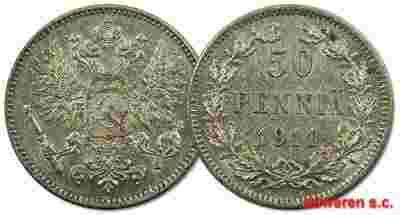 13.FINLANDIA, MIKOŁAJ II, 50 PENNIA 1911