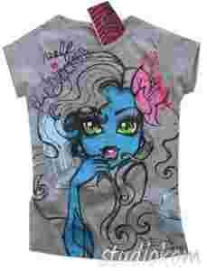 Najnowszy HIT! Nowa bluzeczka z krótkim rękawem MONSTER HIGH, bluzeczka ma z przodu aplikacje wykonane technologi sitodruku przez co są bardzo trwałe, bardzo dobra gatunkowo bawełna, delikatny miękki materiał. Produkt oryginalny z metkami, na licencji, jakość pierwsza,