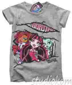Najnowszy HIT! Nowa bluzeczka z krótkim rękawem MONSTER HIGH, bluzeczka ma z przodu aplikacje wykonane technologi sitodruku przez co są bardzo trwałe, bardzo dobra gatunkowo bawełna, delikatny miękki materiał. Produkt oryginalny z metkami, na licencji, jakość pierwsza,
