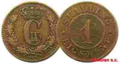 14.DANIA, CHRISTIAN IX, 1 RIGSMONTSKILLING 1867