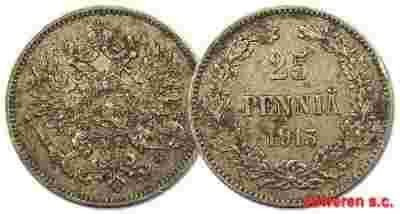 14.FINLANDIA, MIKOŁAJ II, 25 PENNIA 1913