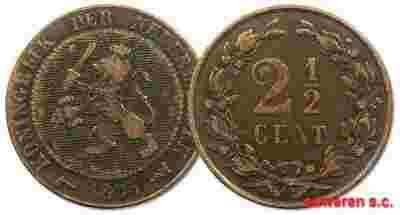14.HOLANDIA, WILLEM III, 2 1/2 CENTA 1884