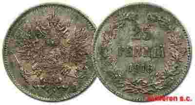 15.FINLANDIA, MIKOŁAJ II, 25 PENNIA 1916