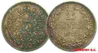 15.FINLANDIA, MIKOLAJ II, 25 PENNIA 1916
