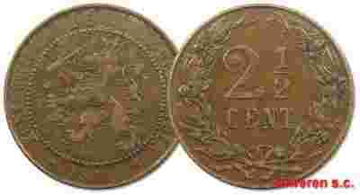 15.HOLANDIA, WILHELMINA, 2 1/2 CENTA 1905