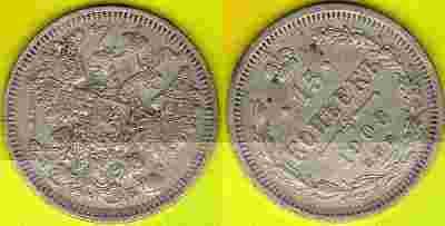 15 Kopiejek 1908 r. Ag - 1