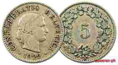 15.SZWAJCARIA, KONFED., 5 RAPPENOW 1922