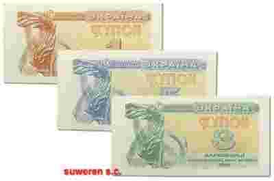 15.Ukraina, Zest.Banknotow 1991 szt.3, St.2/3