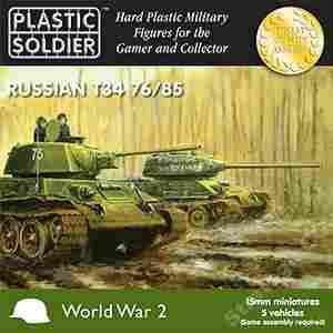 Easy Assembly plastic injection moulded 15mm Russian T34 tank. Five vehicles in the box and each sprue gives options to build either a T34/76 or a T34/85 and comes with a commander figure.