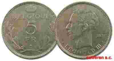 16.BELGIA, LEOPOLD III, 5 FRANKÓW 1937 -QUE