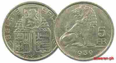 16.BELGIA, LEOPOLD III, 5 FRANKOW 1939