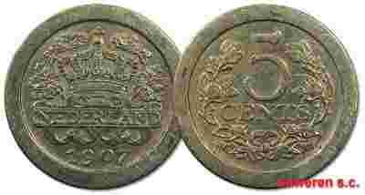 16.HOLANDIA, WILHELMINA, 5 CENTÓW 1907