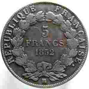 1852 BB Francja 5 Frank Ludwik-Napoleon Bonaparte