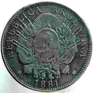 1881 Argentyna Capped Liberty 1 Un Peso