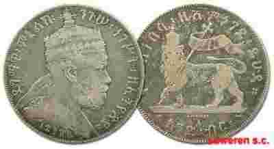 18.ETIOPIA, MENELIK II, 1 BIRR 1889 EE/ 1897