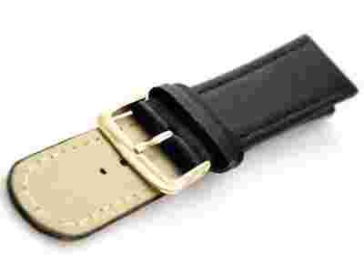 Pasek do zegarka w kolorze czarnym wykonany z skórki naturalnej. Pasek przeszywany nicia.