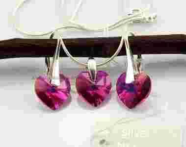 18KOLORÓW~SWAROVSKI SERCE KOMPLET+ŁAŃCUSZEK SREBRO