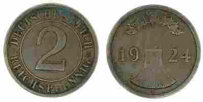 191B - Niemcy , 2 Reichspfennig 1924 E