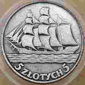 1936 Polska 5 Złotych Statek XXL-Foto