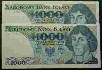 1982 2 x 1000 seria GE i FD stany bankowe UNC
