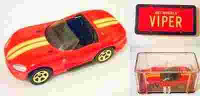 DO SPRZEDAŻY: 1998 HOT WHEELS - DODGE VIPER GTS-R - 1/64. JEST TO MODEL Z KOLEKCJI "AVON PARK 'N' PLATES", WYDAWANEJ W LATACH 1[zasłonięte]998-20. NA PRZESTRZENI TYCH LAT WYDANO W TEJ SERII TYLKO 12 MODELI. NA ZDJĘCIU OBOK MODELU, WIDAĆ PRZEZROCZYSTE PUDEŁKO (DISPLAY) ORAZ PODSTAWĘ PUDEŁKA W POSTACI TABLICY REJESTRACYJNEJ. CAŁA KOLEKCJA "AVON PARK 'N' PLATES" BYŁA WYDAWANA WŁAŚNIE W TAKICH PUDEŁKACH I Z TAKIMI PODSTAWKAMI. STAN MODELU IDEALNY, STAN PUDEŁKA I PODTSAWIKI PRAWIE IDEALNY.