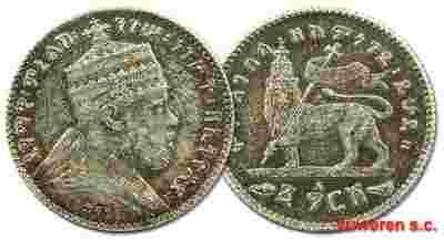 19.ETIOPIA, MENELIK II, GERSH 1895 EE/ 1903