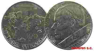 19.WATYKAN, JAN PAWEL II, 100 LIROW 1985