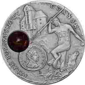 Cechy: W monecie został umieszczony prawdziwy bursztyn.