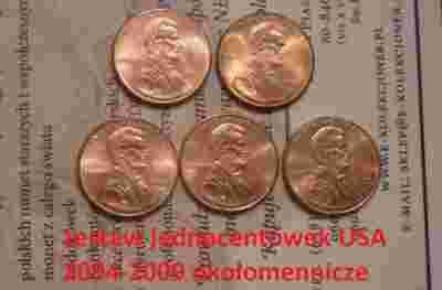 1 cent, one cent, USA, 5 szt. 2[zasłonięte]004-20, STAN I-