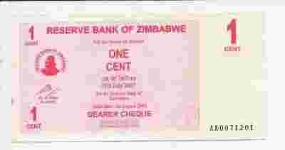 1 cents Zimbabwe 2007r.