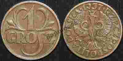 1 grosz 1937 rok - piękny egzemplarz