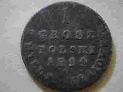 Do sprzedania moneta 1 Grosz Polski z Miedzi Krajowej, wybita w 1824 r.Wygląd monety i jej stan zachowania widoczny na załączonych zdjęciach.