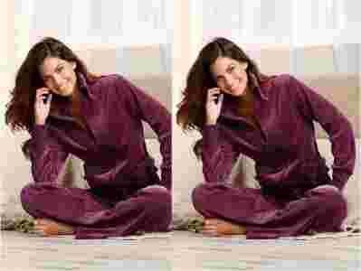 1AK5095 Dres welurowy fioletowy 32/34 LASCANA