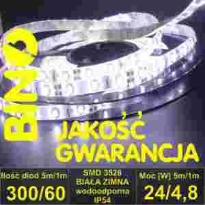 1.) Taśma BIAŁA ZIMNA 300/5m SMD 3528 wodoodporna w żelu IP54 24W - Z101