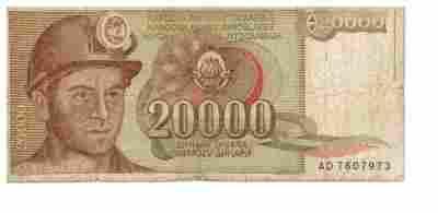 20000 DINAROW 1987 AD[zasłonięte]76079 JUGOSŁAWIA