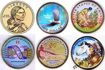 2[zasłonięte]000-20 1$ USA Sacagawea kpl. 5monet kolor jedn.