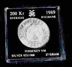 200 Koron Szwecja,MŚ w hokeju 1989,Ag,unc